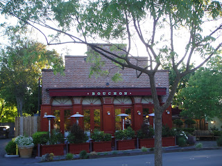 We have dined with great delight in Thomas Keller’s other three eating establishments in Yountville: Bouchon, Bouchon Bakery and Ad Hoc. Bouchon is a bistro style restaurant with wonderful shellfish and a menu with excellent variety and appeal. Bouchon Bakery purveys a panoply of fresh baked pastries, cakes, breads and the like. Its devotees line up before the opening just to ensure first dibs. And Ad Hoc is incredibly unique in that the daily menu is prix fixe and contains one, and only one, selection for each course. Unless you have checked out the website in advance, you don’t know what is being served until you sit down. You always hope for fried chicken but are never disappointed with what is served.