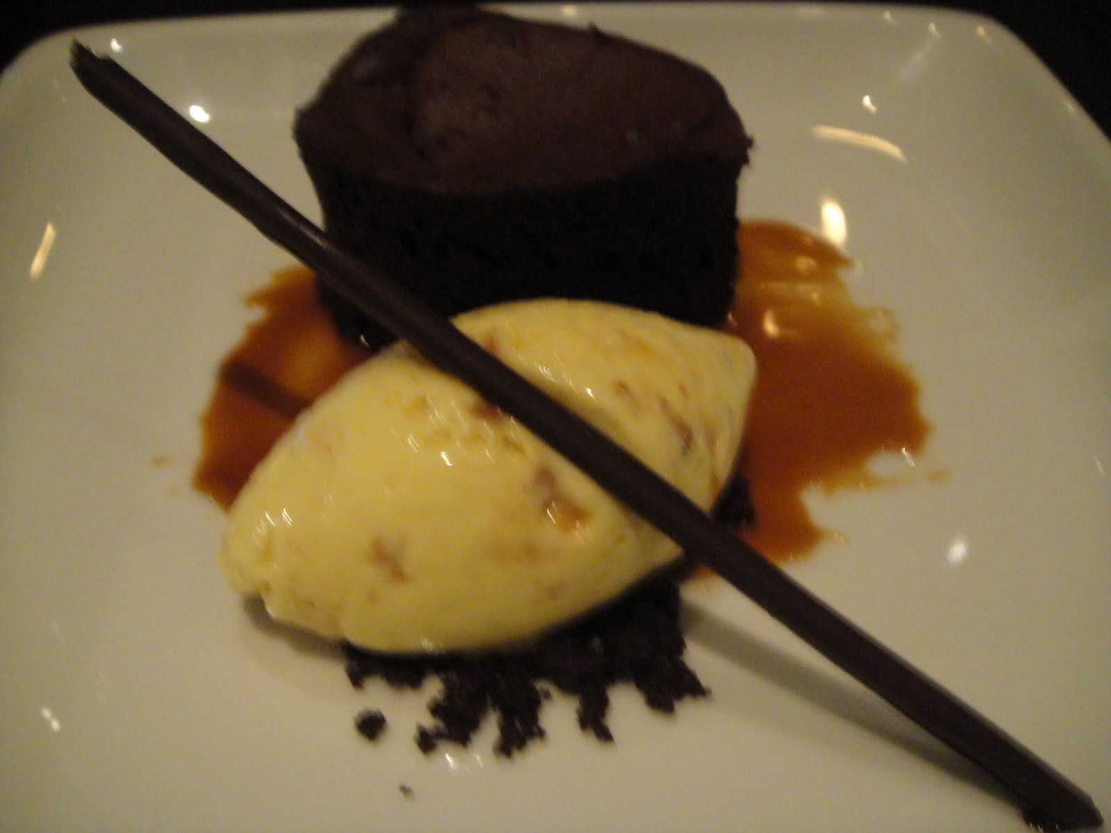 Because chocolate gives me a migraine, the Panna Cotta was graciously substituted for the cake. So we got to experience two fabulous desserts (or at least my companion did). Each worked as a great end to a perfect meal. The wine served was intriguing, as it smelled and had a taste of port to it, but danced across the palate like a glass of sparkling. Heavenly!
