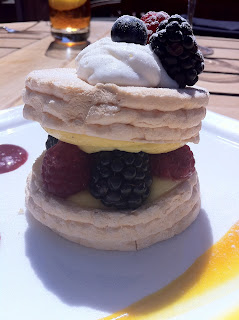 It’s an early lunch as we are attending a dinner party that night, but our server somehow manages to convince us to try the Pavlova. No, he was not administering a psychological test and the source for the dish’s name is unknown to me. But the dessert turns out to be a light, fluffy, golden meringue dancing on a bed of fresh berries. Pure bliss.