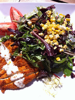 But Sapphire is not a one trick salad bar. My unnamed companion ordered the Southern-Fried Chicken Salad, which is another absolutely delectable dish. The fried chicken is cooked to perfection! Crisp but not oily; moist but not bland. The fried chicken is perfectly complimented by Baby Field Greens, Pecans, Roast Corn, Dried Cranberries and a Buttermilk-Ranch Dressing.