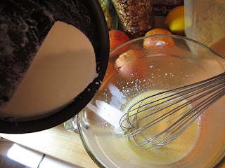 | Tempering the egg mixture |
