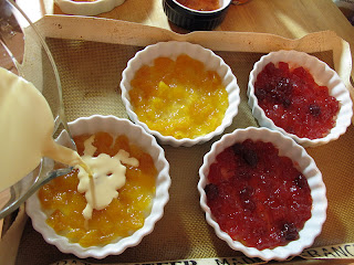 | Bellini, Holiday Jam and Strawberry Rhubarb waiting for the custard |