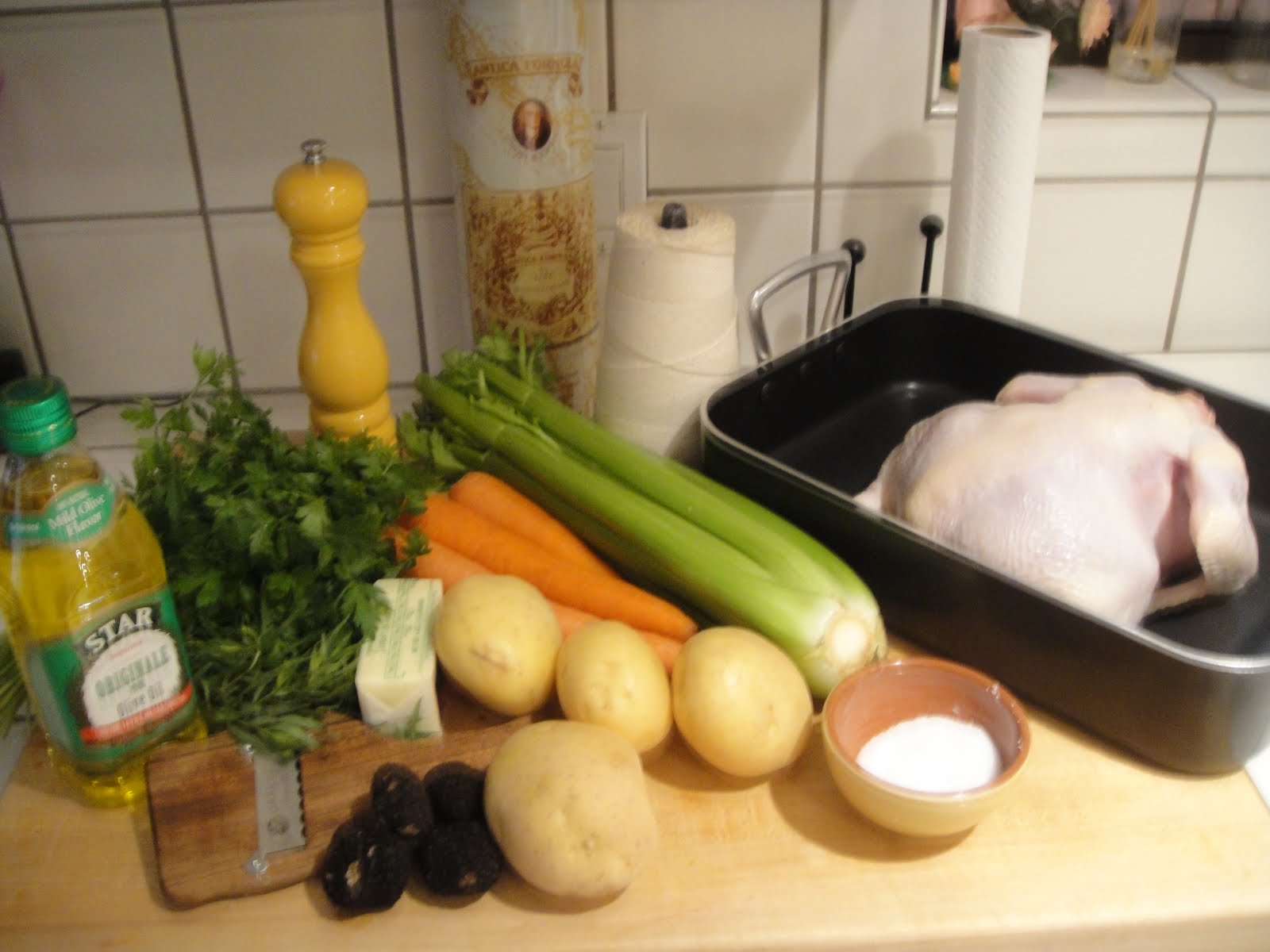 Almost done, and the house is filled with the aroma of roast chicken and truffles